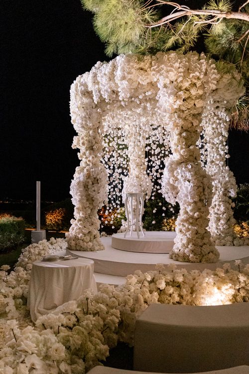 A very special event to celebrate a 10th wedding anniversary in the most intimate and elegant way. Pure sophistication and timeless romance filled the air, and countless white roses created a breathtakingly serene atmosphere for the couple to exchange their vows once again.